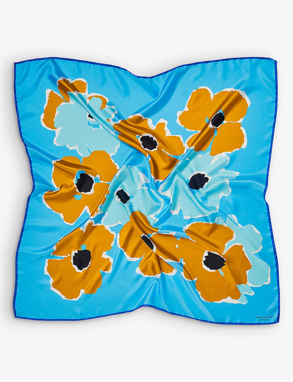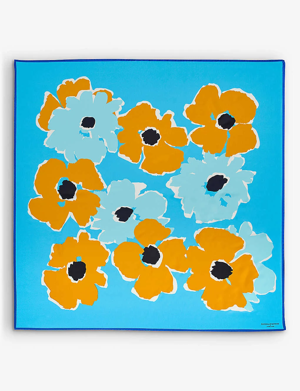 - Square shape, all-over abstract floral print, printed logo at front, hand-rolled and stitched edges