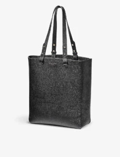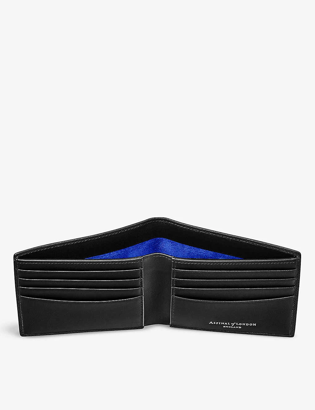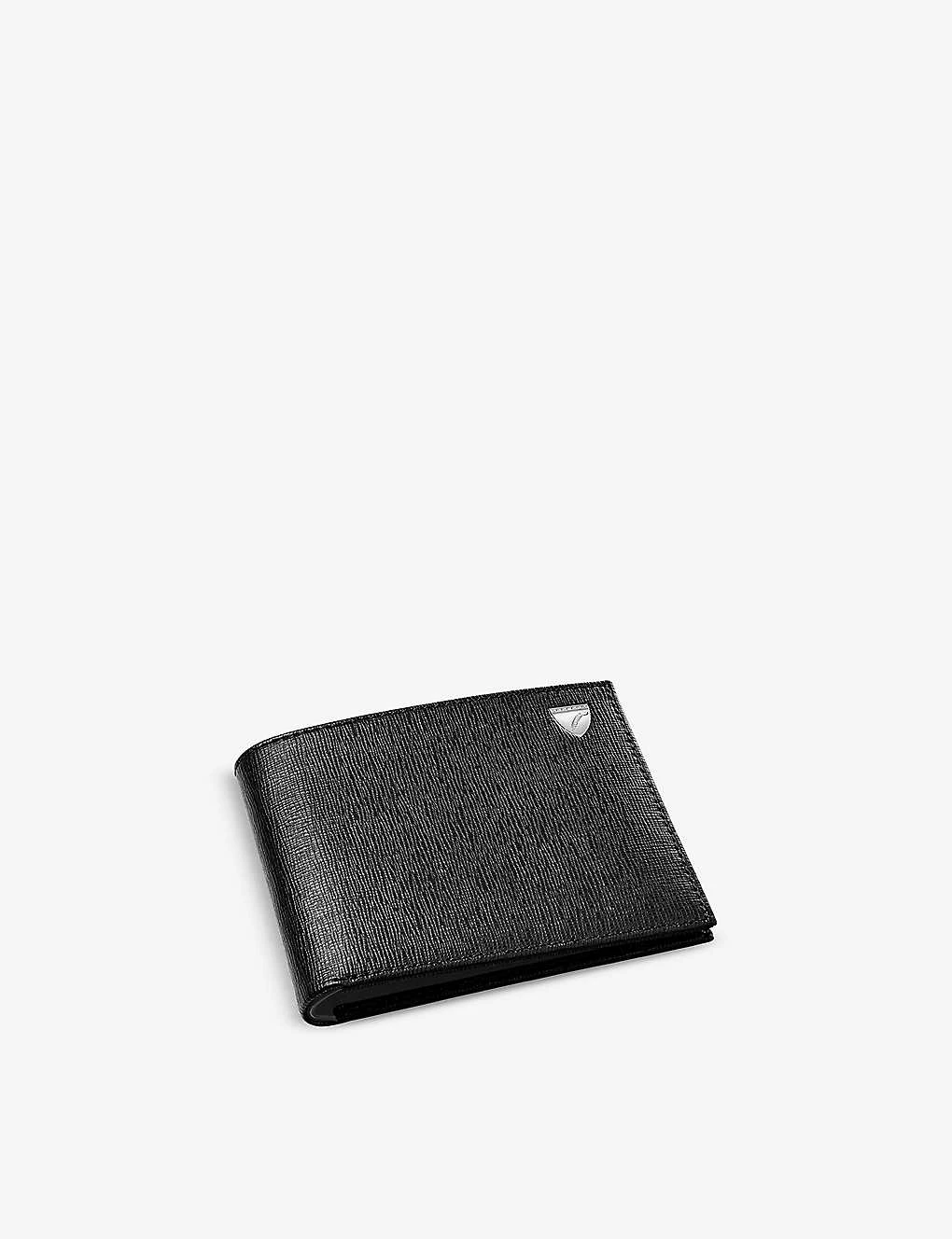 - Grained texture, silver-tone hardware, logo plaque, tonal stitching, six credit card pockets, two full-length note pockets