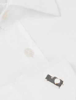 - Exposed button and concealed zip-fly fastening at front