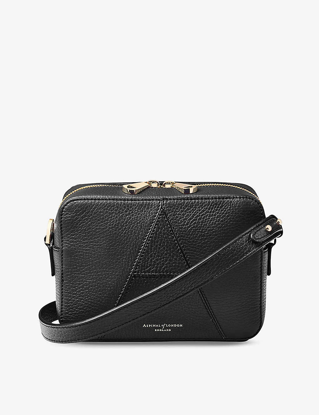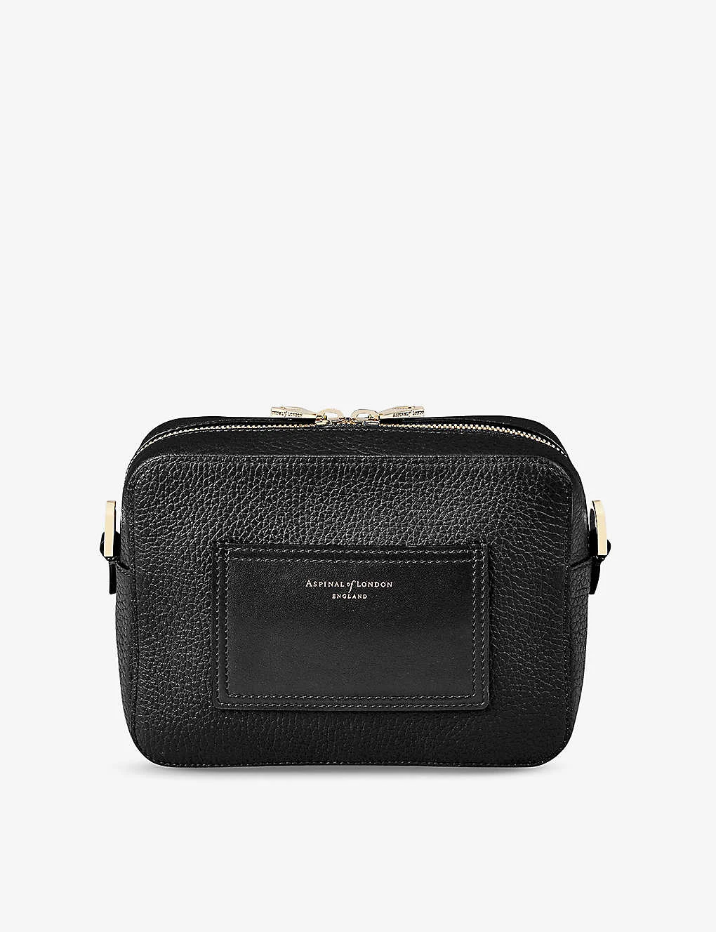Pebbled leather, two card slots, one open slip pocket to the reverse, secured with a dual zip closure, comes with a fully detachable cross-body strap