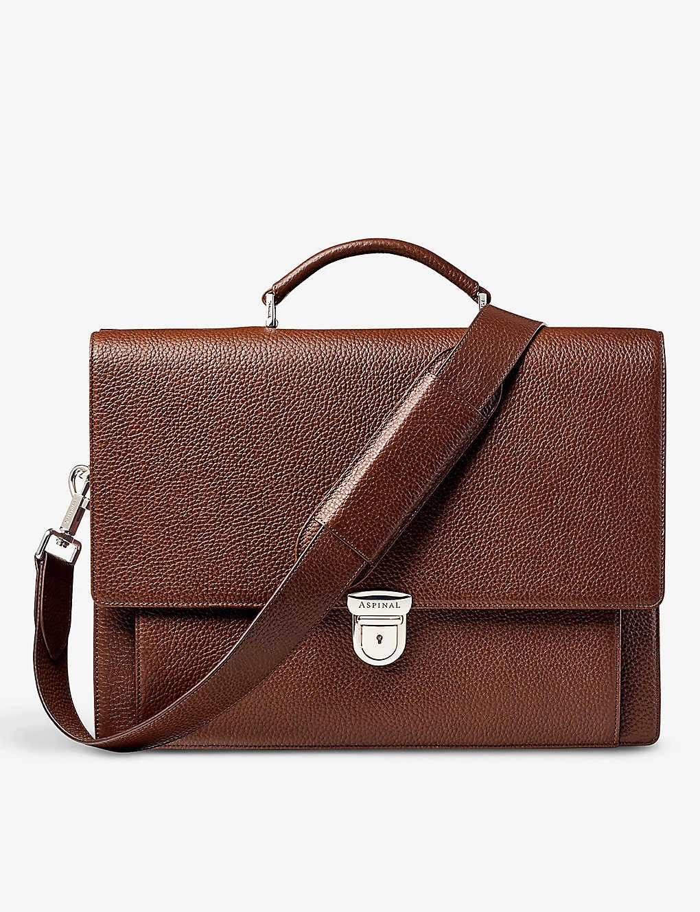 - Aspinal of London pebbled-leather laptop briefcase