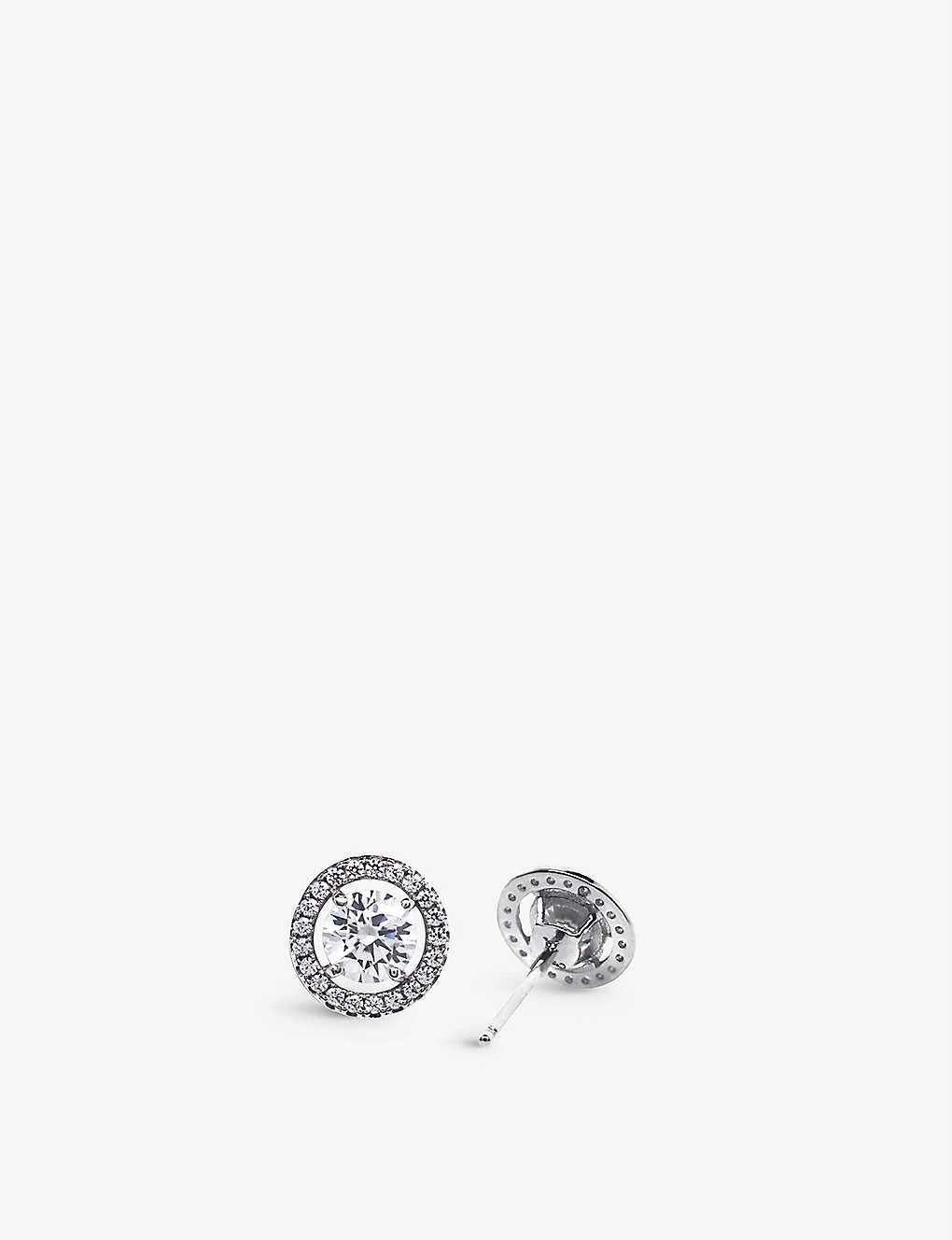 - Round silhouette, central stone, cubic zirconia embellished sides, sold as a pair