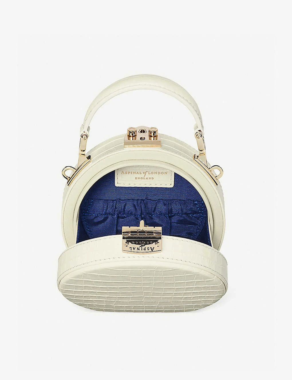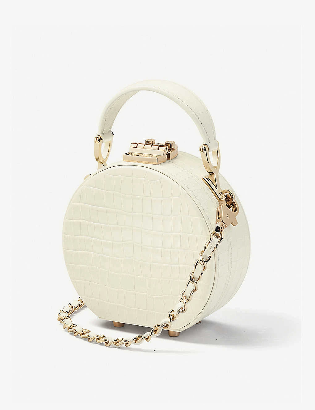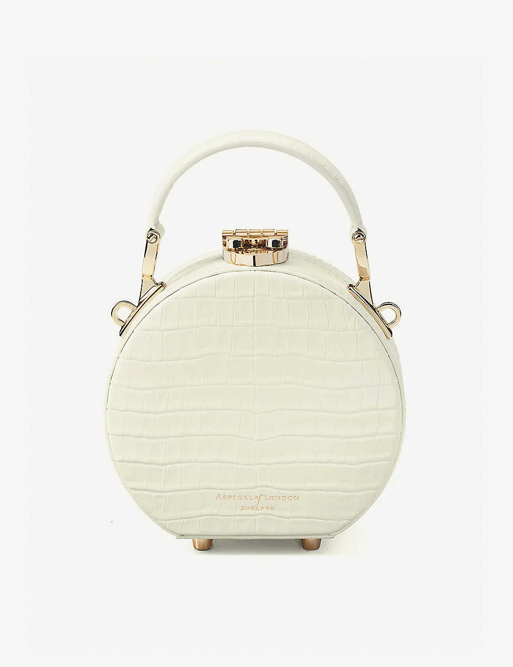 Aspinal of London croc-embossed patent-leather hat box bag