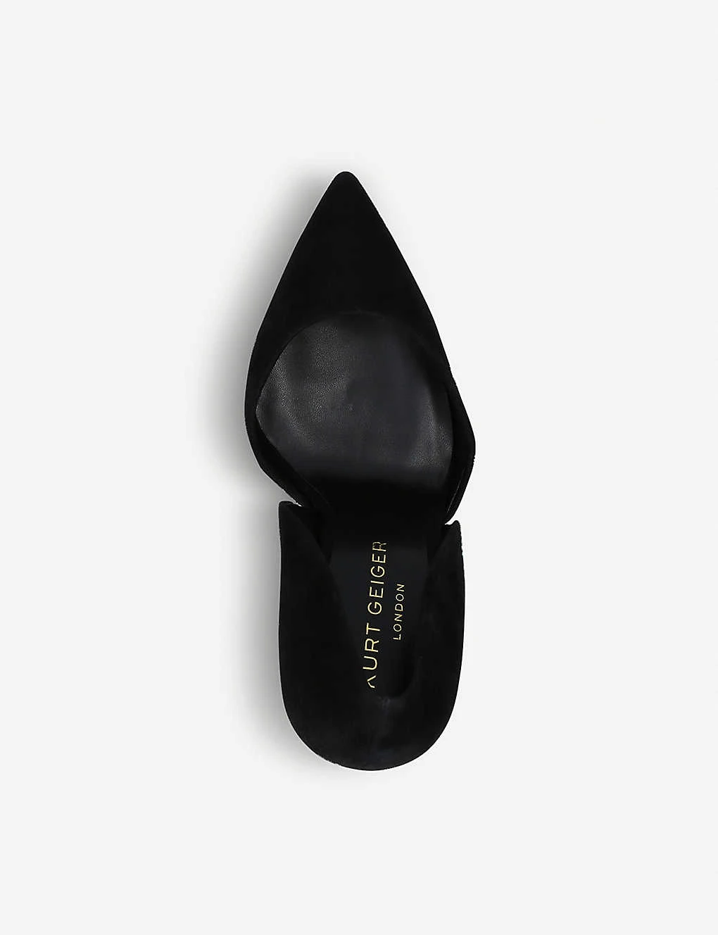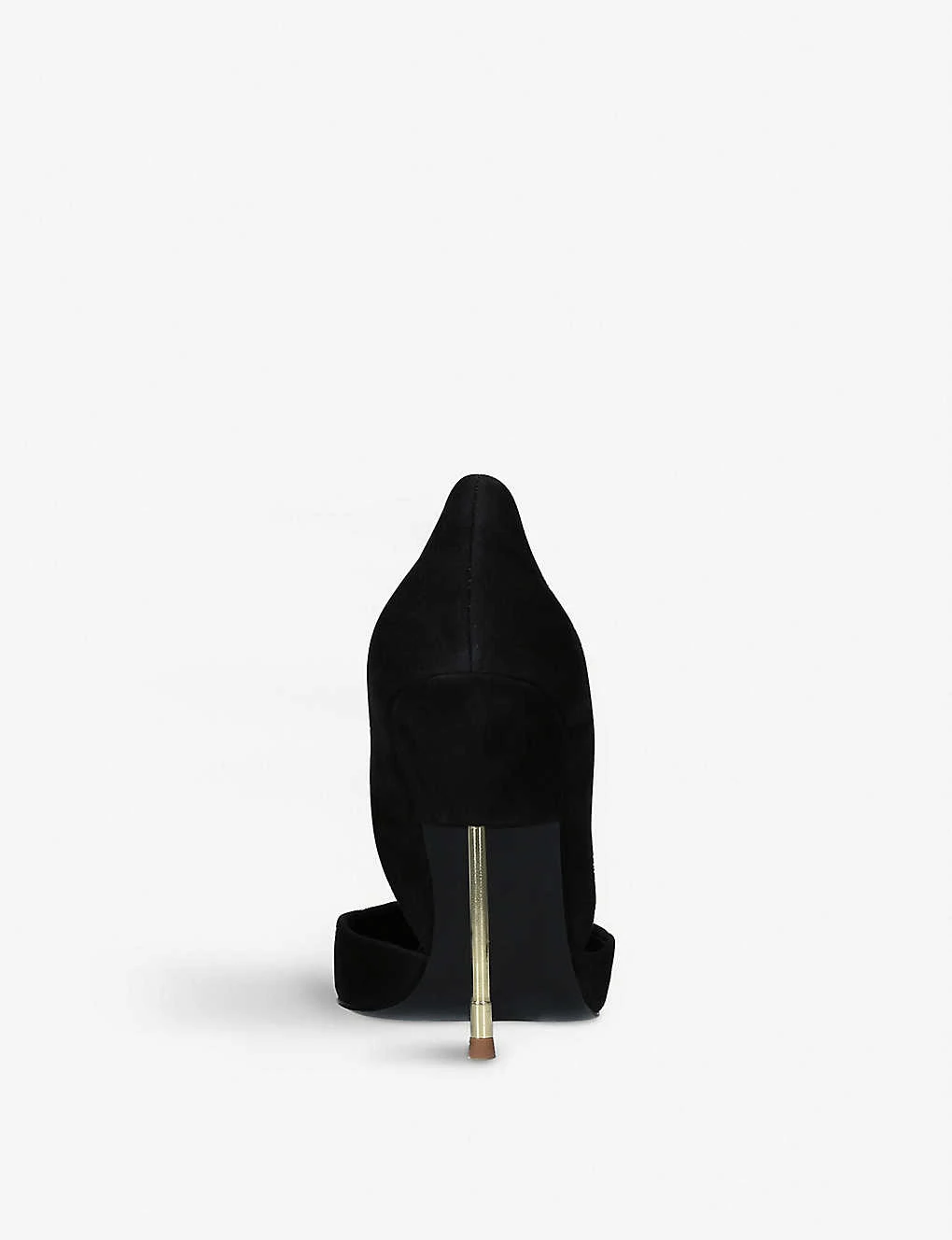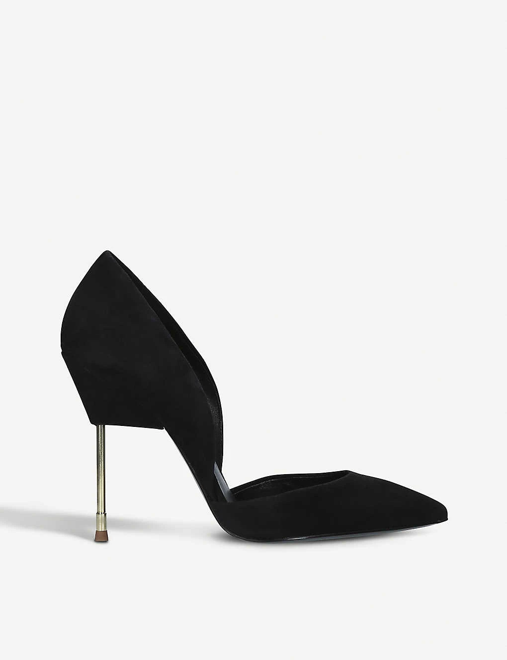 Pointed toe, cut-out sides, metallic stilhetto heel