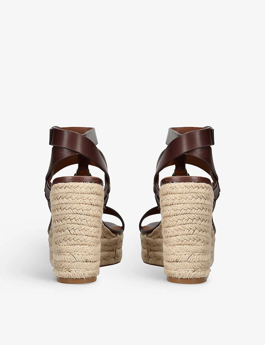 - Open round toe, adjustable ankle strap, branded crystal-embellished eagle head at front, gold-tone hardware