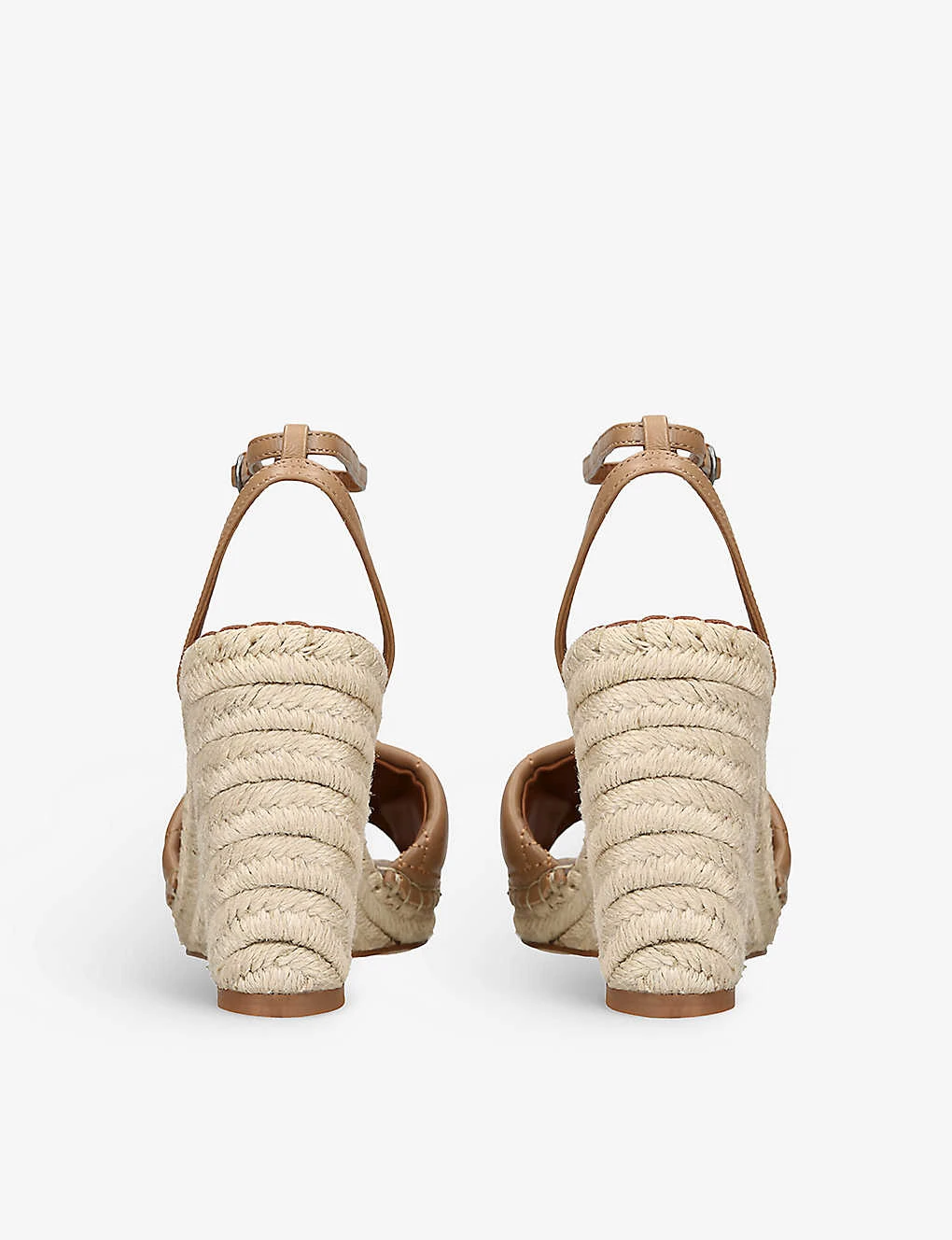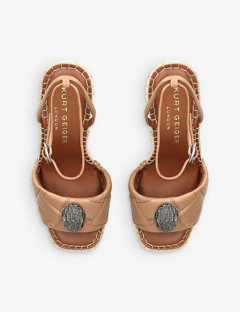 - Open round toe, adjustable ankle strap, single quilted strap at front, crystal-embellished eagle head at front, printed logo on footbed, braid-embellished wedge heel