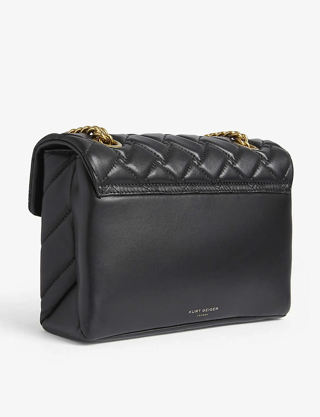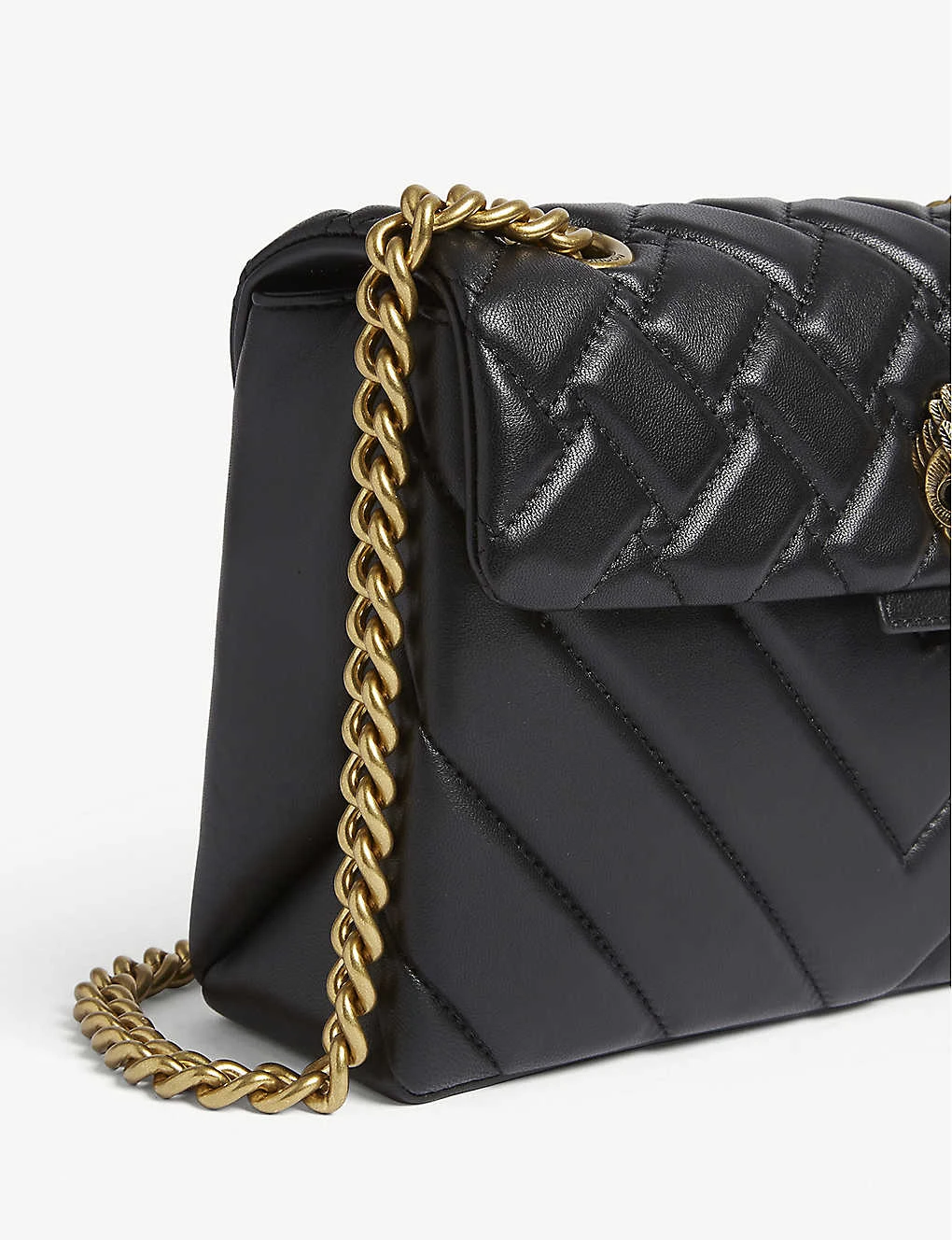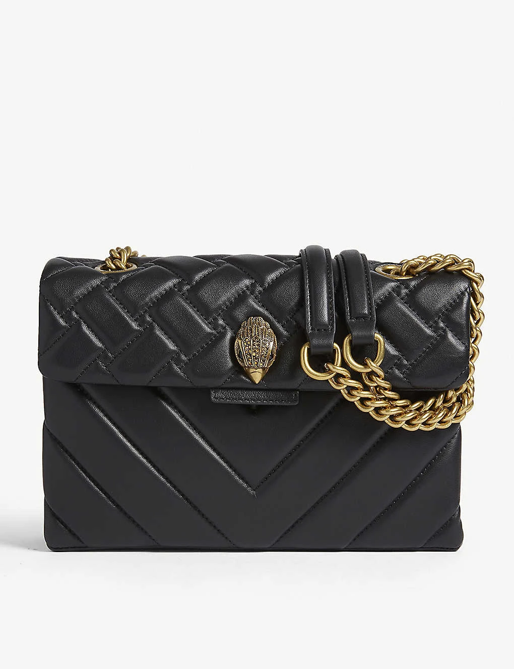 Dual-length chain strap, quilted design, dual main compartments, internal slip pocket, gold-toned hardware, crystal-embellished eagle head