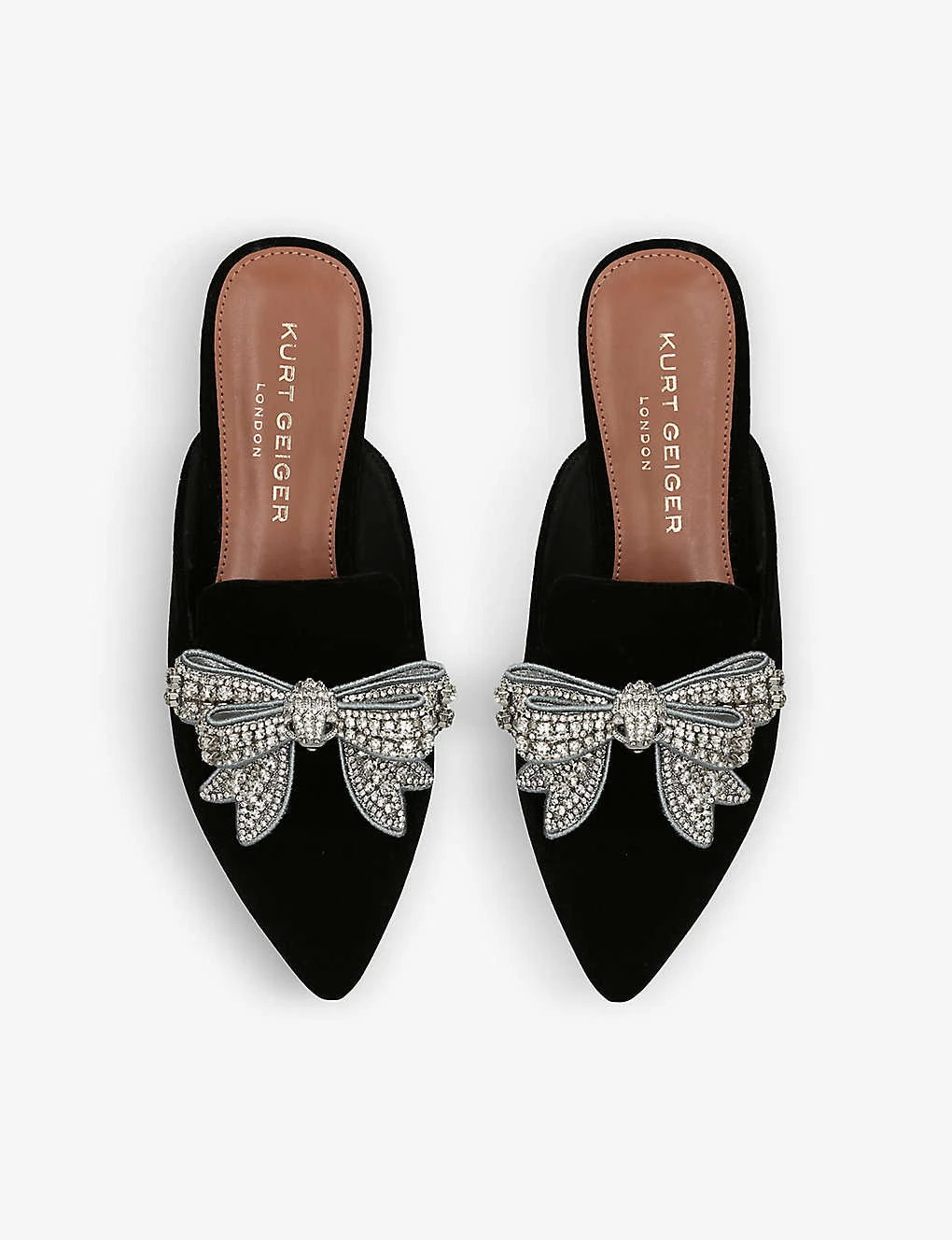 Be the first to review “Kurt Geiger London Olive Bow Crystal-embellished Velvet Flat Mules” Cancel reply