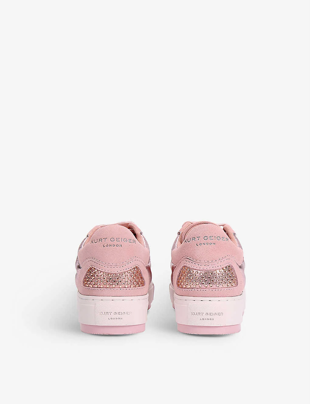 - Round toe, chunky laces, panelled construction, metallic trims, crystal embellishments, embossed logo at the heel