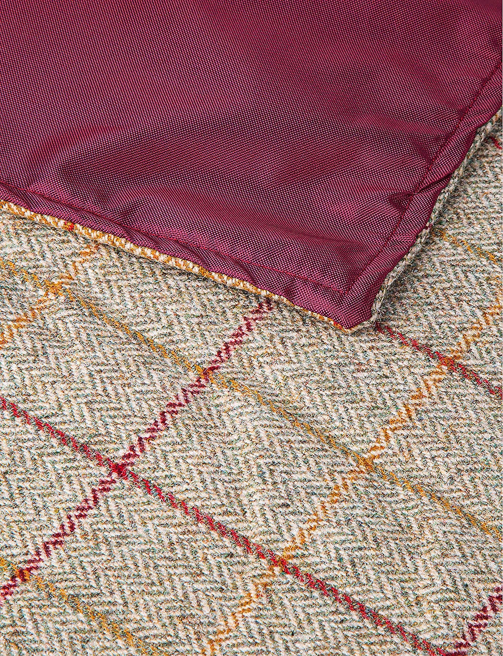 - Tweed pattern, waterproof backing, logo patch