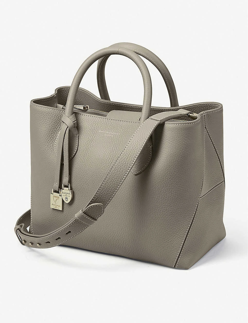 Double handles, logo detail to the front, branded charms, grosgrain lining, central zipped compartment, interior zipped pocket, two open pockets, protective base feet, capacity to store an iPad Air 9.6