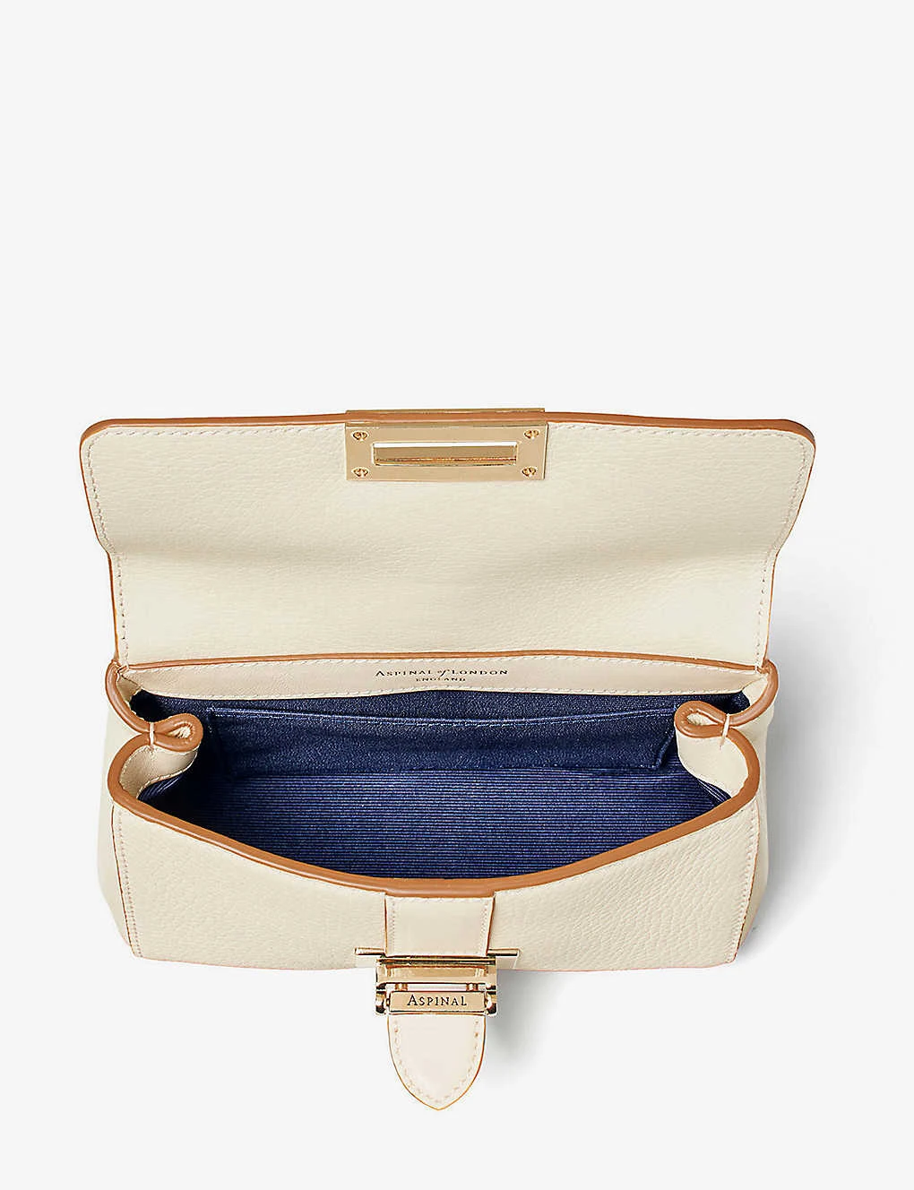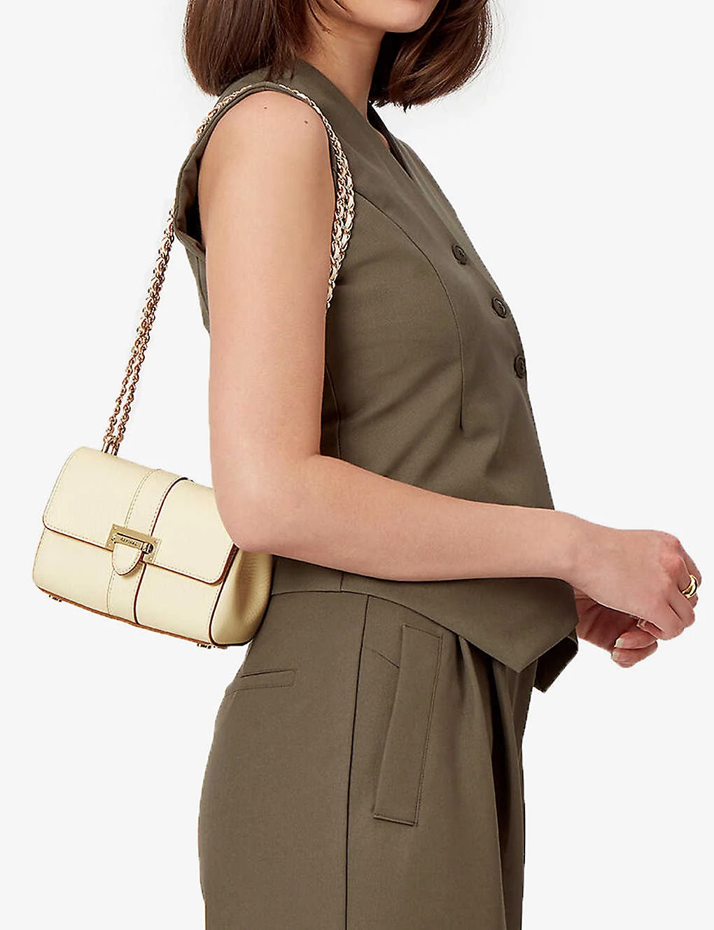 - Adjustable plaited leather and chain shoulder strap, gold-tone hardware, grained-leather design, branded front buckle, grosgrain-lined interior, one interior compartment with slip pocket