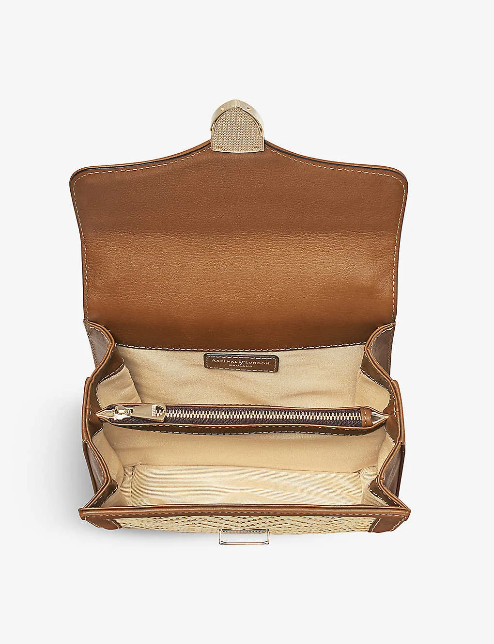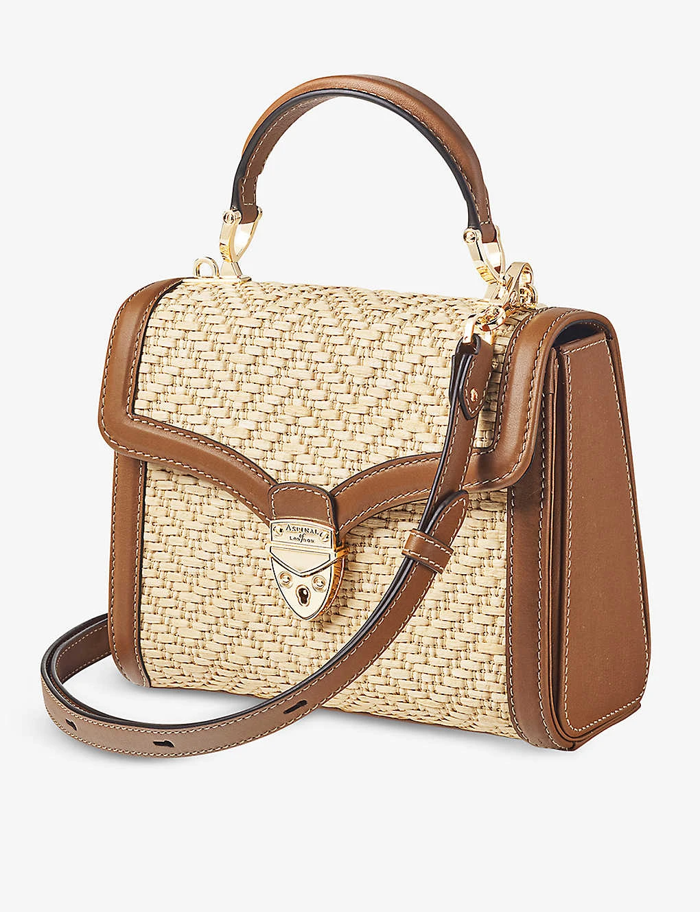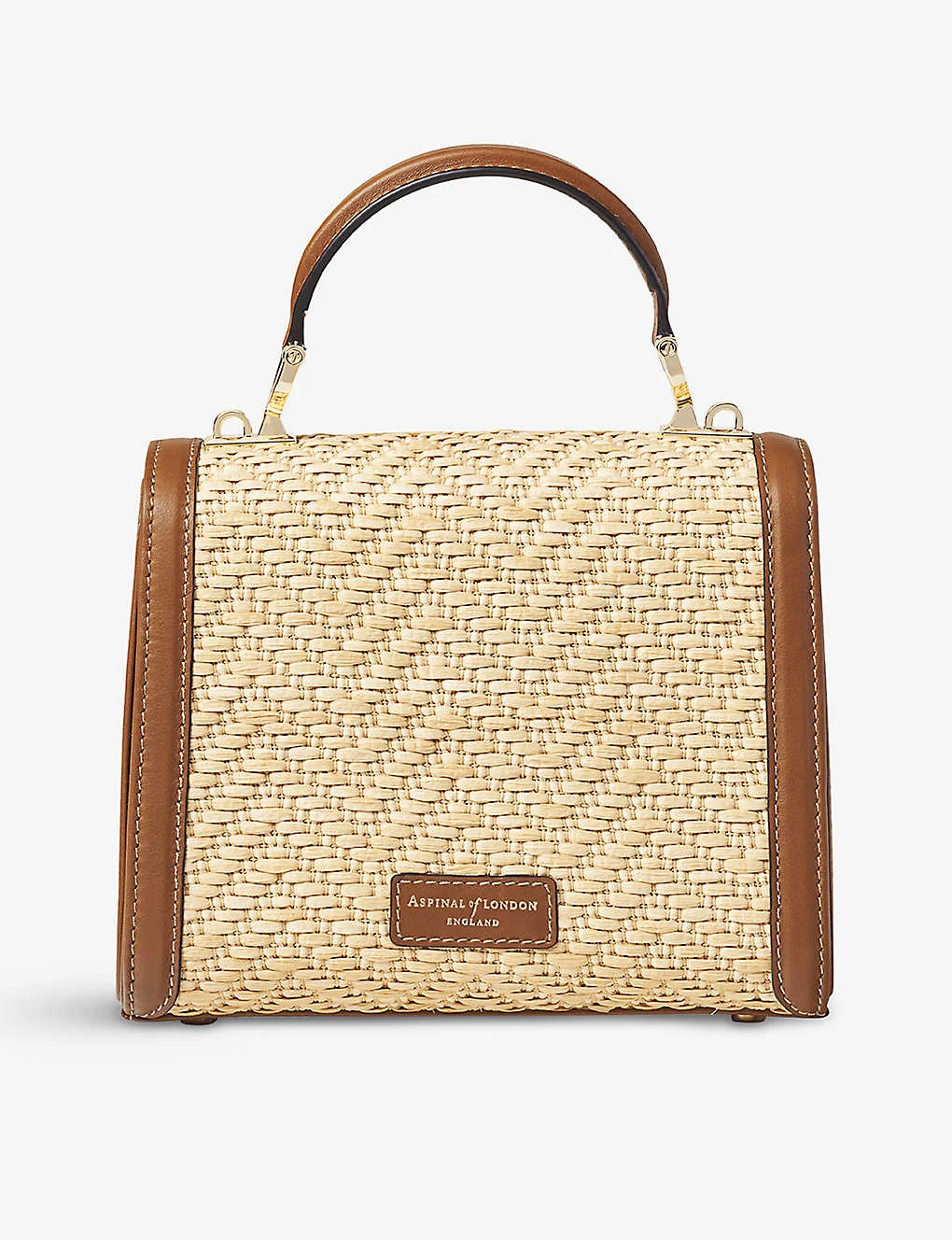 - Aspinal of London woven chevron raffia and leather top-handle bag
