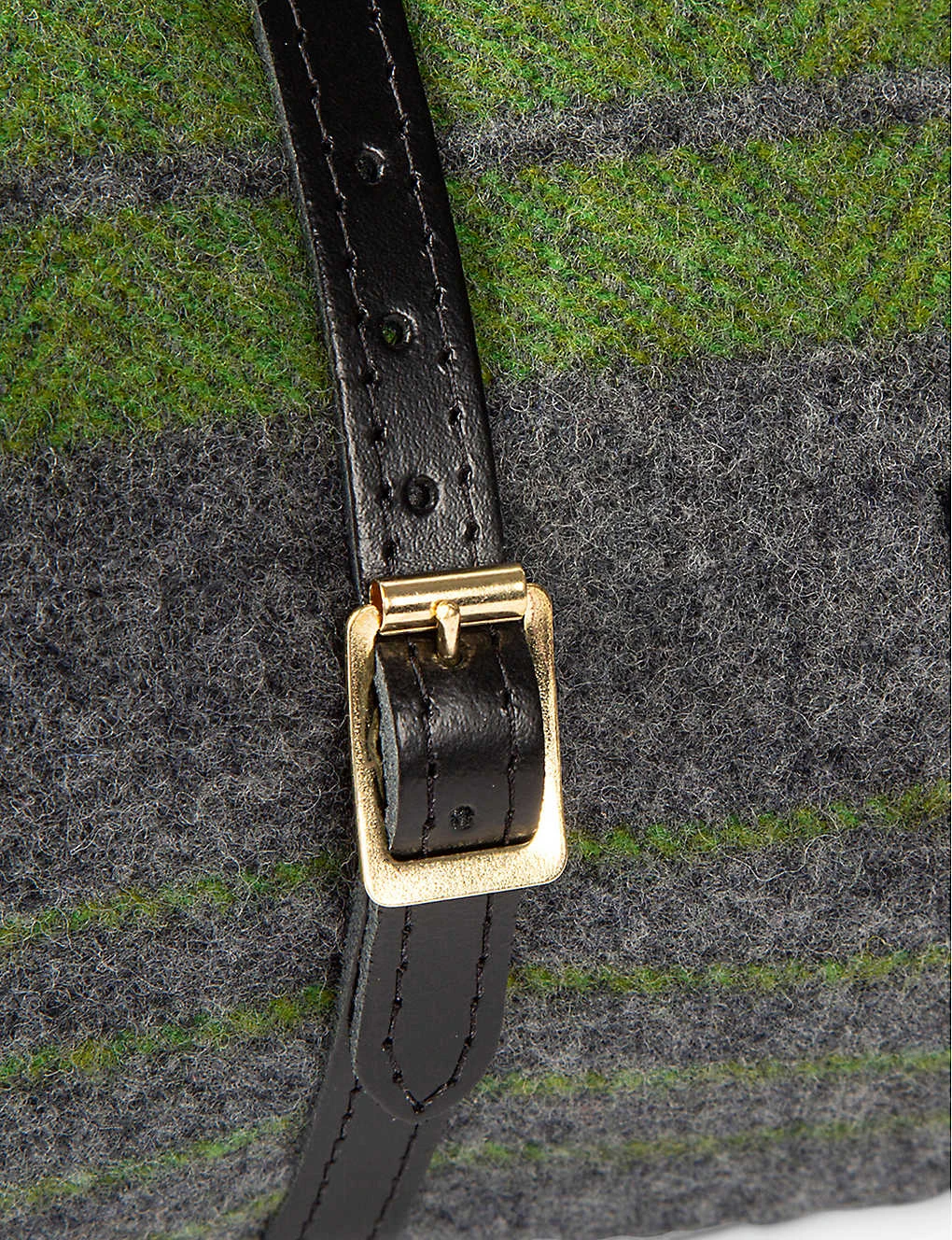 - Top layer 100% new wool; bottom layer 100% organic wax cotton; straps 100% leather