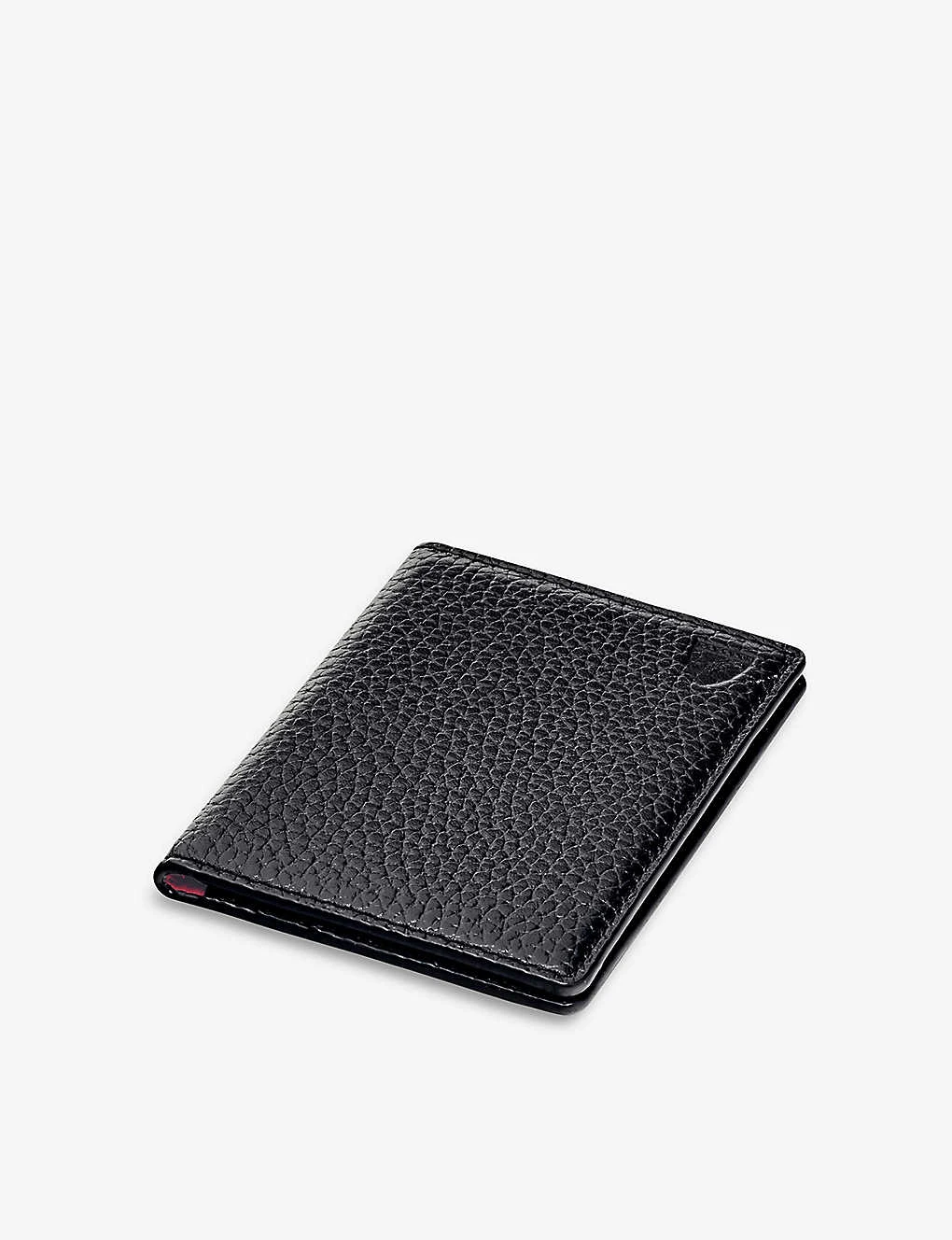 - Three card compartments, one ID card window, suede and moiré silk lining, brand logo embossed at front